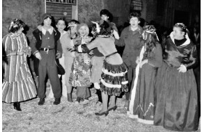 Una coppia di maschere posa per il concorso della Proloco con perfetti costumi di epoca se...