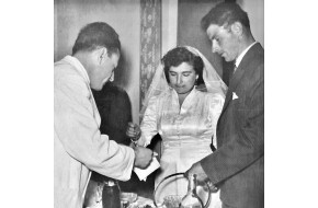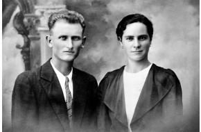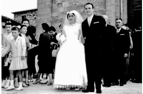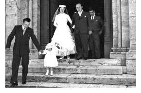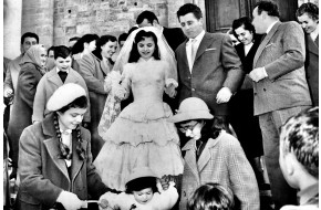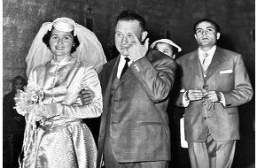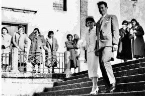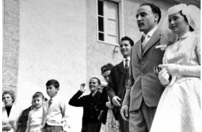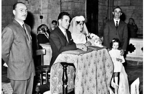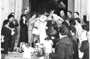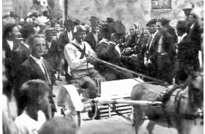 Caratteristica foto che immortala il conferimento della quota di grano, spettante al padro...