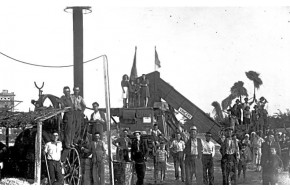 Durante il regime fascista, si usava festeggiare l'evento della tribbiatura del grano ...