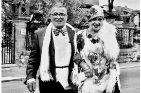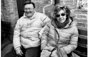 Una coppia di persone molto conosciute in paese, abilmente vestita da proprietari terrieri...