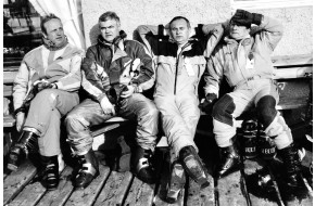 Foto piuttosto inusuale che ritrae tre cavatori nel momento di innescare il ribaltamento d...