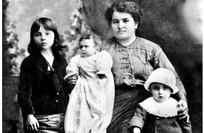 Angiola Fregoli, mamma dei fratelli Laschi, lavora da sarta ultilizzando una macchina da c...