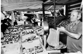 Il banco di Ciro con frutta e chicchi, in vendita per la Festa dellaMadonna all'Abbazi...