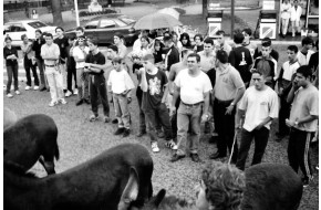 Ancora un'immagine della Tribbiatura in Piazza Garibaldi con in primo piano il contadi...