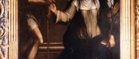 It is one of the three great scenes in the oratory of the kitchen of the Sanctuary of St. Catherine, is home to a wall flanked by two paintings done by Riccio shortly before his death and perhaps supplemented by Arcangelo Salimbeni. The left depicts Jesus holding out to Catherine the cross which the Holy had given us as a beggar