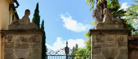 Due grandi sfingi accovolate in pietra serena, collocate sulla sommità delle due colonne all'ingresso della Villa il Pavone, residenza di Ranuccio Bianchi Bandinelli e collocata subito fuori Porta Romana.
