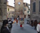 The short Pulcinella Bell Tower rises in front of Saint Augustine’s Church. On top of it ,a metal covered wooden statue, connected ,through a mechanism, to a clock below, strikes the time. On the right, looking at the tower, there are two parallel streets: Ruga di Mezzo (originally Arts Street) and Ruga di Fuori (originally Guerrazzi Street) in the ancient district of terraced houses, that present a typical Medieval structure. In this place the manufacturing and producing activities were located.