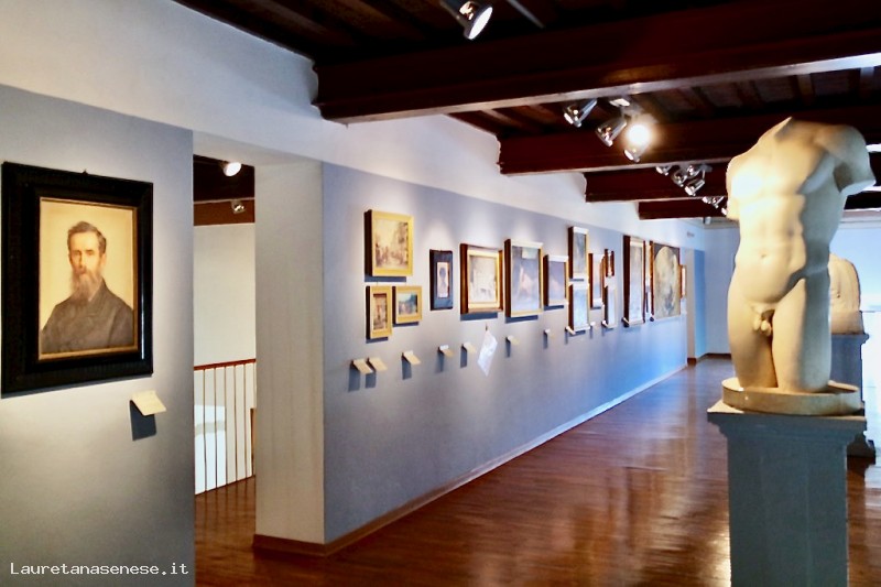 In addition to a large number of paintings by Amos Cassioli, author of the battle scenes of the famous Sala del Risorgimento in Palazzo Pubblico in Siena, you can appreciate some interesting paintings of his son Giuseppe, characterized by a modern trait that favors the color spots over well-defined details.