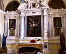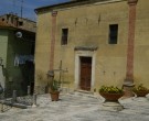 Externally the building has a rectangular facade, with two brick slabs that support a molded frame. At the center, a rectangular travertine portal, while at the sides, higher, two rectangular windows are opened. The exterior finish is plastered, which simulates the horizontal course of the stone. Access to the church is lateral and leads directly to a rectangular-class hall, covered with moored sailboats, between which frescoed lunettes are located.