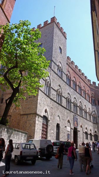 Il palazzo fu costruito dalla famiglia ghibellina dei Marescotti verso la metà del XII secolo, la quale vi eresse la massiccia torre in pietra, nelle trifore della facciata è ancora oggi visibile lo stemma della famiglia. Anticamente il palazzo fu sede del Consiglio della Repubblica di Siena ed è diviso su due piani. Nel 1506 venne acquistato dai Piccolomini, i quali apportarono al palazzo delle modifiche; nel 1770 passò alla famiglia Saracini e la facciata fu ampliata piegandosi lungo la curva della strada. Nel 1806 ad opera dello stesso Galgano venne inaugurato il museo, allestito all’interno del palazzo gotico ed aperto al pubblico degli appassionati di arte e degli allievi dell’Istituto di Belle Arti. Nel 1877, quando la famiglia Saracini si estinse, il palazzo venne ereditato dai Chigi. L’ultimo proprietario del palazzo fu il Conte Guido Chigi Saracini, che ne ordinò una nuova ristrutturazione incaricandovi l’architetto Arturo Viligiardi. Nel 1932, per volontà del Conte, venne qui istituita l’Accademia Musicale Chigiana, centro internazionale per il perfezionamento degli studi musicali.