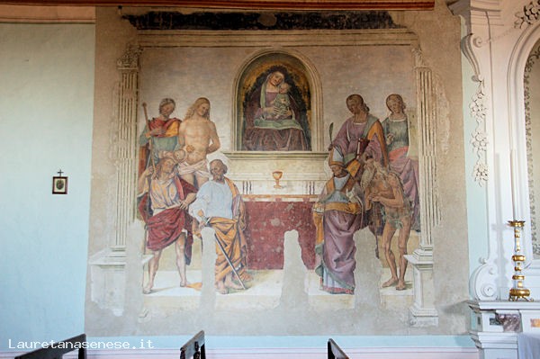 L'edificio, ad una sola navata, fu costruito nel XV secolo. Custodisce uno stendardo processionale con la raffigurazione della Deposizione da un lato e la Vergine e Santi dall'altro, opera dell'artista locale Luca Signorelli (XV sec.).