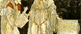 The first scene in front of the main entrance, where there is also the inscription "castissimum virginis templus caste ingredi memento", depicts Hermes Mercury Trismegistus, Egyptian scholar who is remembered as the depositary of the entire ancient wisdom, and knowledge of the earthly symbol of the beginning . How do you explain the scroll at his feet was considered a contemporary of Moses: Hermis Mercurius Trismegistus contemporaneus moysi. It is represented as an Eastern sage shown in the act of offering two other men with his right hand a book, while his left hand is supported by a quote written on a tombstone supported by two winged sphinxes. The two men, who commit an act of deference, it may perhaps typings of the sages of the East and West. The table reads deus amnium creator secum Deum et fecit visibilem hunc fuit primum et solum quo oblectatus east et valde amavit proprium filium here appellatur verbum sanctum. This is an allusion to the creation, carried out by the "Verbum sanctum." On the pages of the book it is printed: suscipite or licteras et legis egiptii, a reference to Egypt as the site of ancient wisdom, alluded to probably the two sphinxes. The design of the work, dated 1488, is attributed to Giovanni di Stefano, based on analogies with the Cumaean Sibyl.