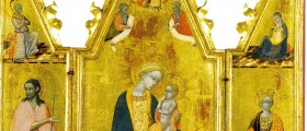 The small triptych, coming from the Chapter of the Pientina Cathedral, represents in its central compartment the Madonna of humility, in the ante Saint John the Baptist and Saint Catherine of Alexandria and in the cusps the Blessing Christ between angels and Prophets, the Announcing Angel and the Virgin Annunciata.