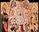 Tanto l’Assunta londinese, quanto quella di Giovanni di Paolo, si ispirano infatti alla composizione della Vergine dell’Antiporto di Camollia: un perduto affresco che si stagliava sul principale accesso settentrionale di Siena ed era stato delineato negli anni trenta del Trecento da Simone Martini.