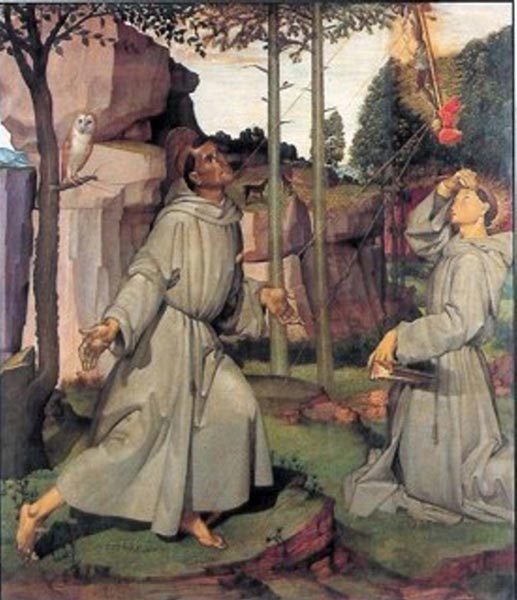 Da documenti ritrovati nell'archivio dell'ospedale locale, la Fraternita di Santa Maria della Misericordia commissionò l'opera il 2 ottobre 1486 per collocarla nell'altare detto "delle stimmate" all'interno della chiesa di San Francesco. Tempera su tavola