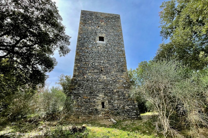 • La torre sulla cima di un monte omonimo, in mezzo ad un bosco di lecci.