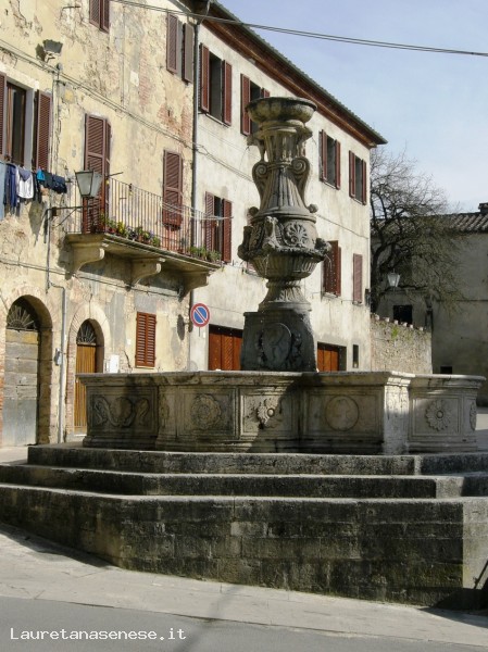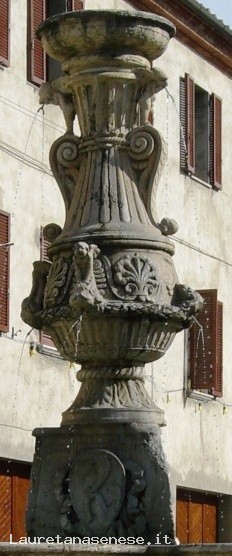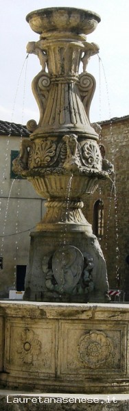 Splendida opera rinascimentale in travertino realizzata nel 1472 dallo scultore Antonio Ghini in quello che allora era il centro mercantile del paese. La superficie esterna della vasca è suddivisa in pannelli rettangolari decorati con motivi vegetali o allegorici.