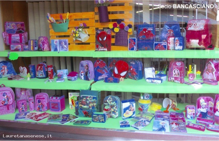 A questa attività primaria si aggiunge l'offerta ricchissima di tutto ciò che serve per la scuola, caratterizzata da un eccezionale assortimento di zaini e borsette.