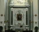 L'interno, ad un'unica navata, ha in controfacciata una cantoria con un pregevole organo settecentesco, mentre nelle pareti laterali si trovano due coevi altari in stucco dalle raffinate decorazioni. Si conserva un interessante bassorilievo in terracotta effigiante la "Madonna col Bambino e angeli".