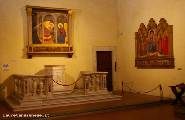 Tra le opere più importanti si devono segnalare l'Annunciazione del Beato Angelico, la Madonna in gloria di Bartolomeo della Gatta, la Deposizione di Luca Signorelli, l'Estasi di S. Margherita del Crespi.