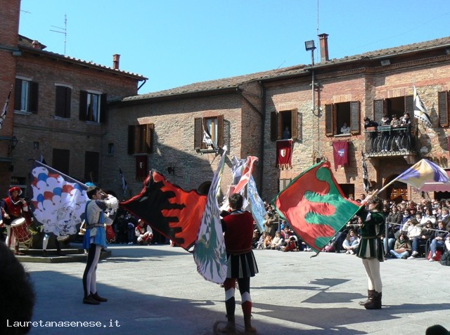 La festa, ormai diventata un tradizione, si svolge tutti gli anni la domenica successiva al 19 marzo. Alle 9 al suono delle chiarine ha inizio il Corteo Storico in costume, formato da quasi 200 figuranti. L'una dopo l'altra, le otto Contrade, precedute dagli Sbandieratori, entrano nella piazza, salutano gli ospiti e si dispongono in ordine con le spalle al Palazzo Comunale.