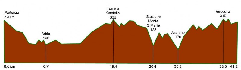 It starts from the village of Mucigliani following the sign "Transient Site". This first section, particularly for the spectacular views offered and the path that runs through fields of wheat, can be traveled only during the dry season because it is entirely of clay. Then, once you get to the Leonine, osservazionedel extraordinary point of view of Siena. From here the road becomes gravel after two kilometers and reach the tarmac road and turn right towards Arbia. Arrived at the level crossing, turn right and continue for a cottage for a few miles to the station in the plains of Castelnuovo. Then still on the asphalt, it continues to Torre a Castello steadily but slightly uphill. Qu turning right, we continue to travel along a dirt road and then touching Monte Sante Marie, after a continuous succession of descents and climbs very challenging, we arrive at Asciano. Arrived at the cemetery of Asciano turn right along the Lauretana towards Siena to the junction which brings us back to Mucigliani.