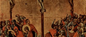"La crocifissione" è un dipinto autografo di Duccio di Buoninsegna appartenente al registro principale della Maestà del Duomo di Siena, realizzato con tecnica a tempera su tavola nel 1308-11, misura 10 x 76 cm. ed è custodito nel Museo dell'Opera del Duomo di Siena.