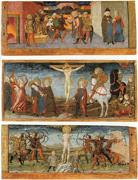 Three Predella Fragments of the Montisi Altarpiece: Trial of Saint Sebastian before Diocletian; Crucifixion; Martyrdom of Saint Sebastian