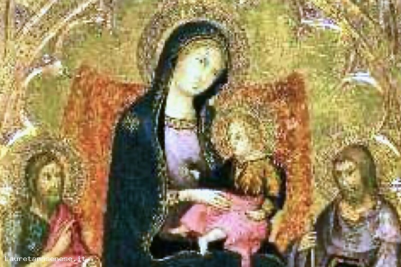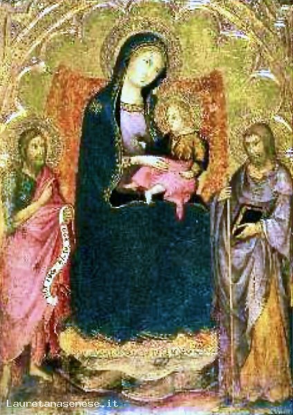 Pannello centrale di un trittico raffigurante la Madonna con il Bambino ed ai lati i Santi Giovanni Battista e Giacomo.